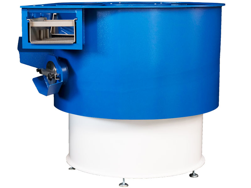 Rund ausgeführter Arbeitsbehälter mit einem gleichmäßig und flach ansteigenden Behälterboden