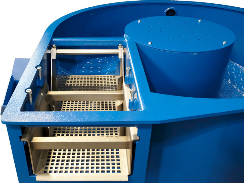 Diverse Trennsysteme zur Trennung von Werkstoff und Schleifkörpern (Magnetseparatoren, Umkehrseparierung, Abstreifer, Fallstufen, …)