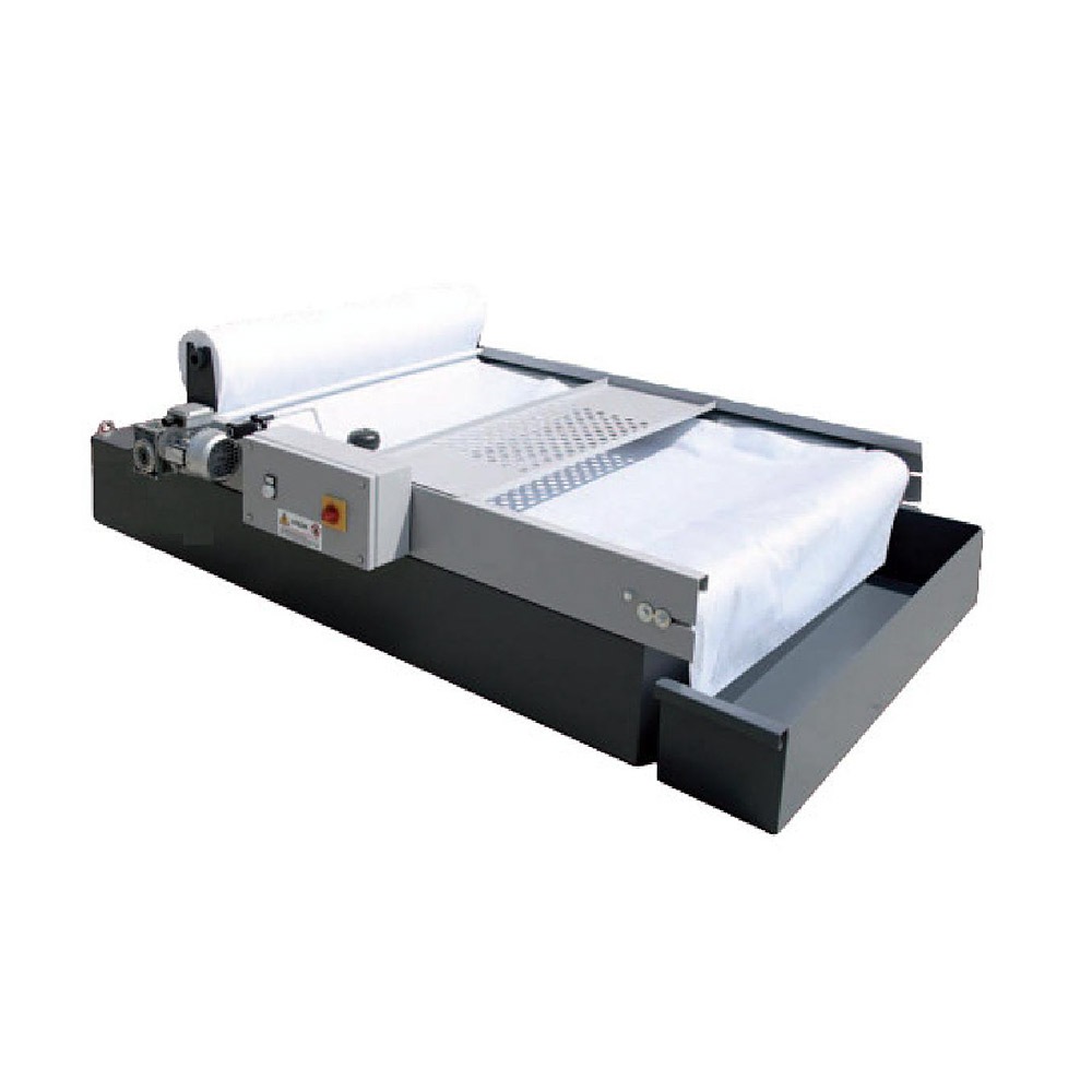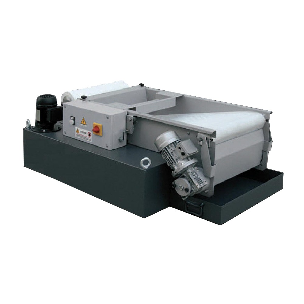 Die Bandfilter mit Flachbett stellen eine äußerst einfache und vielseitige Lösung bei der Filtration von Prozesswasser dar, und sind das Ergebnis sorgfältiger Forschungsstudien mit einem neuartigen Realisationskonzept und Design. Bandfilter sind an sämtlichen metallverarbeitenden Werkzeugmaschinen zur Filtrierung von Emulsionen und Ölen mit einer Höchstviskosität von 30° cSt. bei 40 °C bei Leistungen von 50 bis 500 l/min und einem Filtergrad zwischen 10 und 60 μm, je nach verwendetem Filtervlies geeignet. Die verunreinigte Flüssigkeit wird über ein Verteilerblech oder Einlaufkasten (beruhigter Einlauf) zum Bandfilter eingeleitet, dadurch verteilt sich die Flüssigkeit gleichmäßig auf dem Filtervlies. Wenn sich das Filtermedium infolge der Verschmutzung verstopft, steigt der Flüssigkeitsstand an und somit hebt sich der Schwimmer und betätigt den Mikroschalter. Dadurch wird der Getriebemotor zum Weitertransport des verbrauchten Vlieses angesteuert, welches in einem entsprechenden Schlammbehälter gesammelt wird. Die gereinigte Flüssigkeit durchströmt die Auffangwanne und wird anschließend je nach Verwendungsart vom Reintank mit Hilfe einer Rückförderpumpe an die Werkzeugmaschine zurückgeführt.